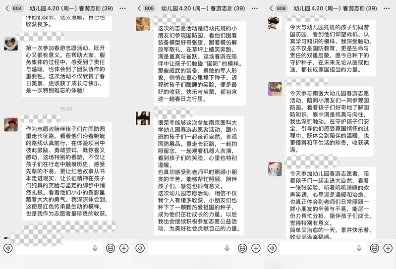 此次春游,孩子们走出幼儿园,开阔眼界,在实践中收获成长。志愿者们用热情与责任传递温暖,展现了当代大学生的青春担当。幼儿园对南京医科大学公共卫生学院志愿者们的无私帮助致以诚挚感谢,未来也将继续开展丰富实践活动,助力幼儿健康快乐成长,期待下一次美好的春日之约。